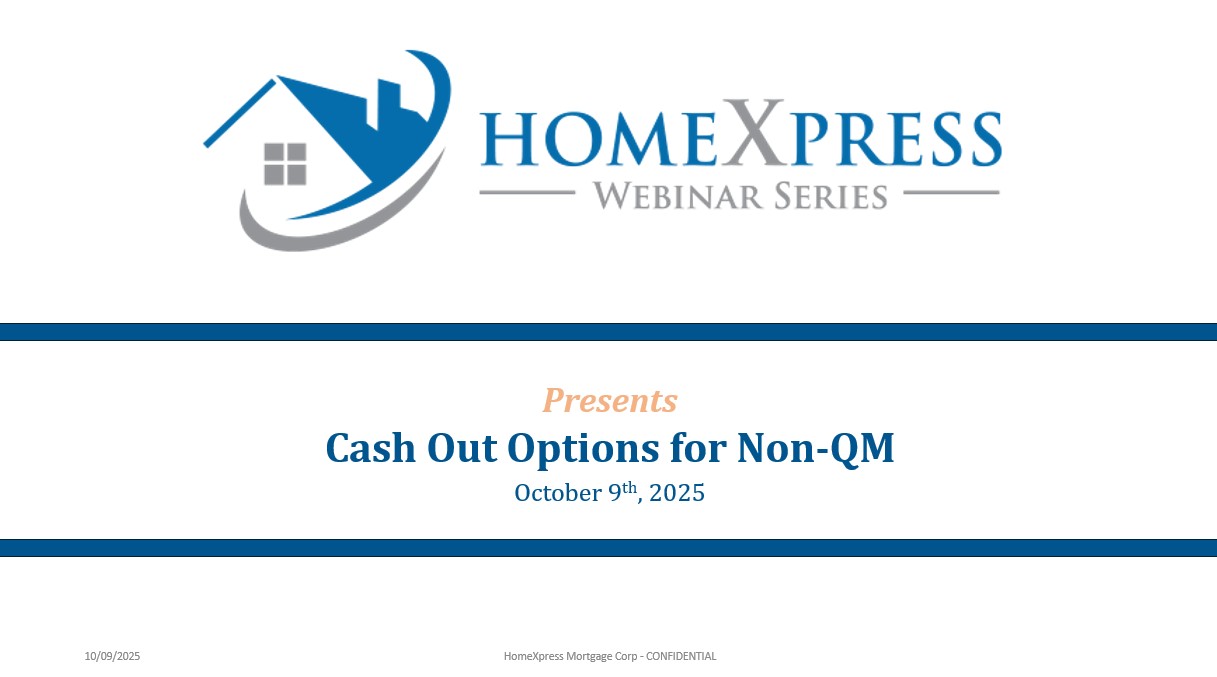 HomeXpress Mortgage is proud to present our Broker Webinar Series. Each month, David Grider, SVP of Wholesale Lending, hosts a free one-hour webinar discussing topics relevant to mortgage brokers. With more than 25 years of experience, David is an expert in the mortgage industry and he will provide insight on how to close more loans using Non-QM products. Please register below to attend our next webinar.